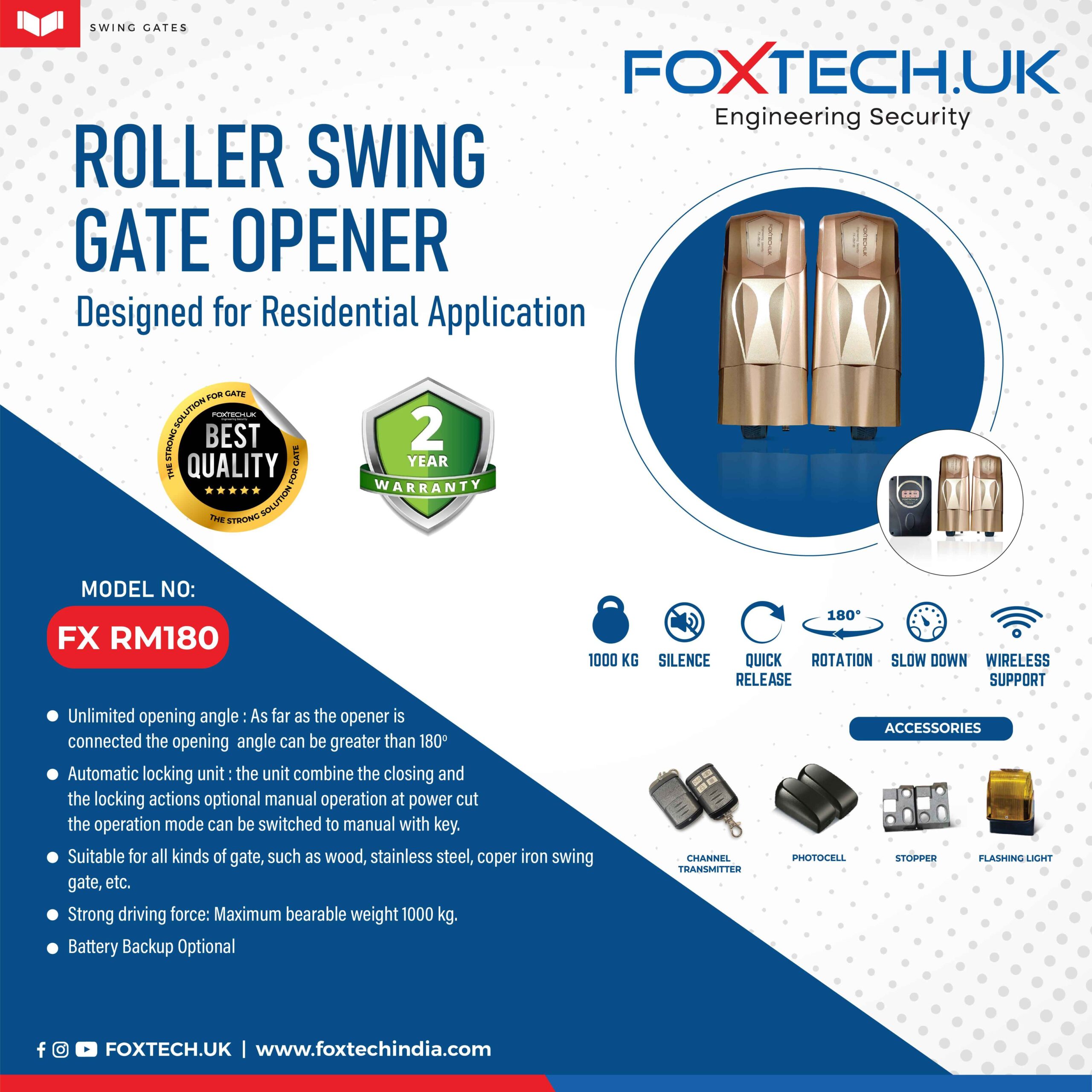 - Suitable for all kinds of gate, such as wood, stainless steel, coper, iron swing gate, etc.